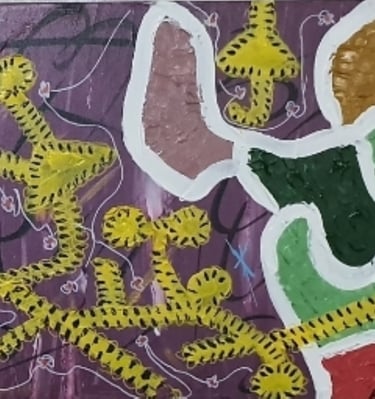Bold layers revealing stories of resilience.