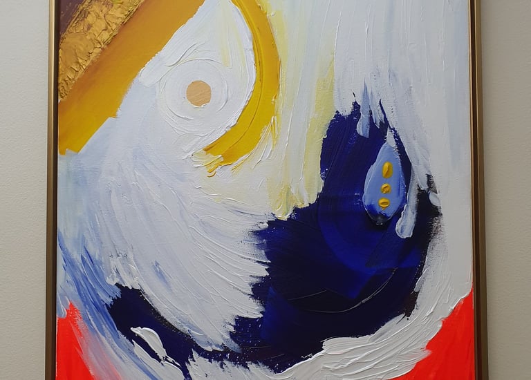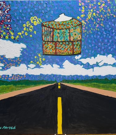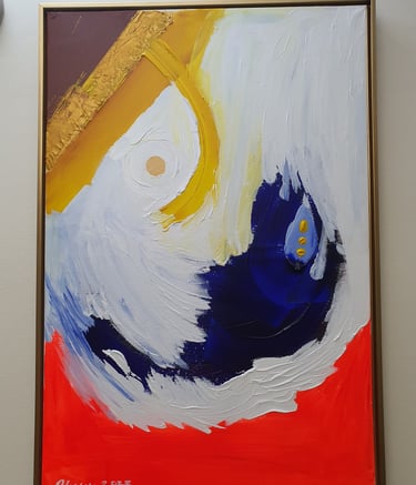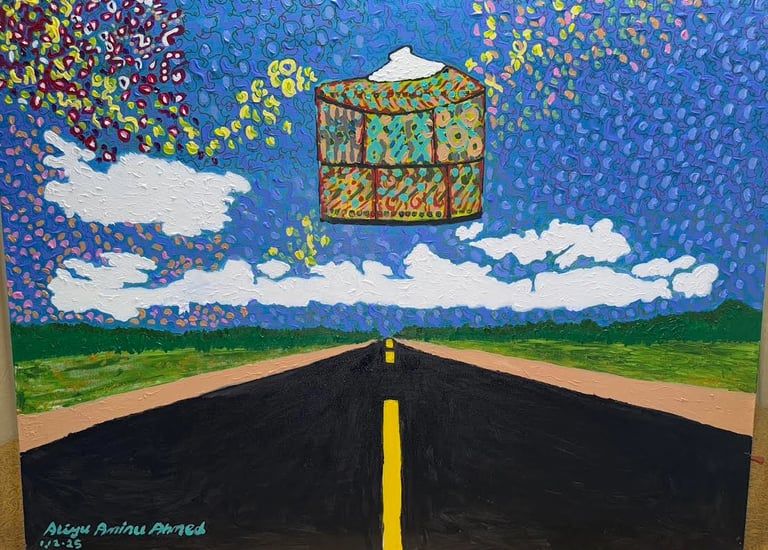 “Art Jollof”: a philosophy that celebrates freedom, originality, and expressive abundance. Like its culinary namesake, Art Jollof embraces richness and diversity, layering color, texture, and material into compositions that are visually generous and emotionally resonant. His abstraction resists minimalist restraint, proposing instead an open, evolving process shaped by culture, belief, and everyday life